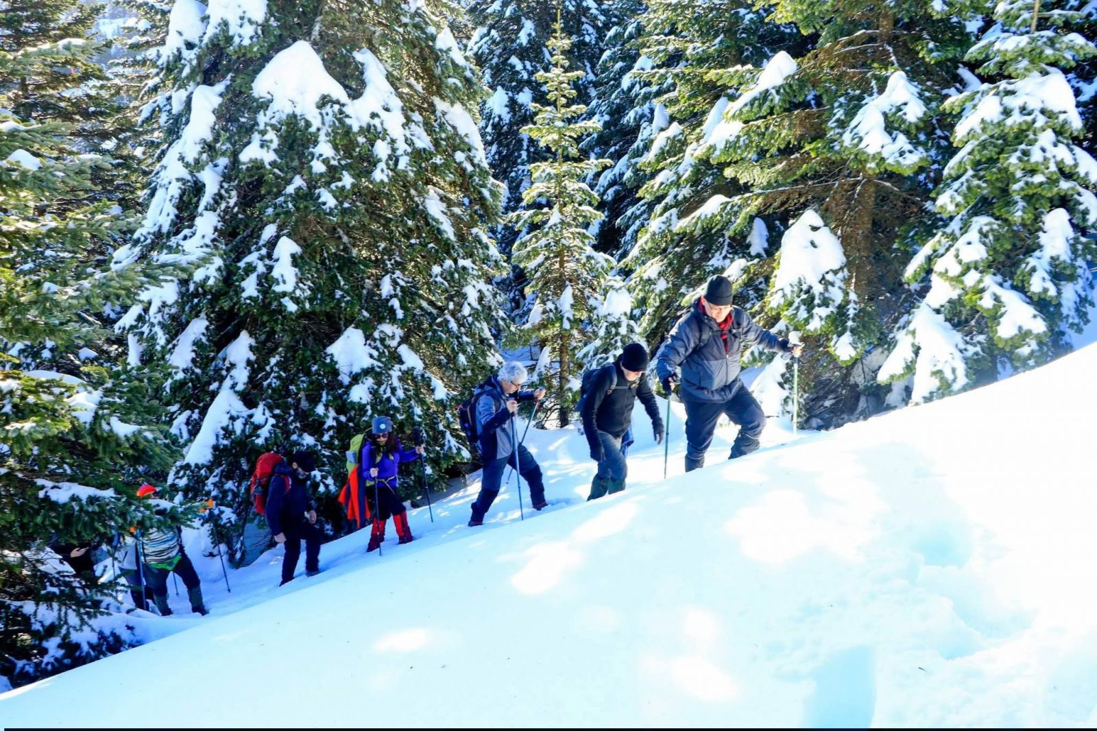 Bekldiğimizden fazla kar vardı. Kar yumuşamamış, çok sertti. Batmadan karın üzerinde gidebiliyorduk. Zamanla ağır kilolu arkadaşların batmaya başlağını gördük. Sonrası hepimiz bat çık olduk. Yinede karın sertliği öndekilerin iz açması ile yetmez oldu. Yol yapmak mümkün olmadı. Kimi zaman batan tek başına çıkamadı. Öğleye kadar yoğun karlı dağlar da geçti. Cennet kaya, Alıç yayla kar altındaydı.